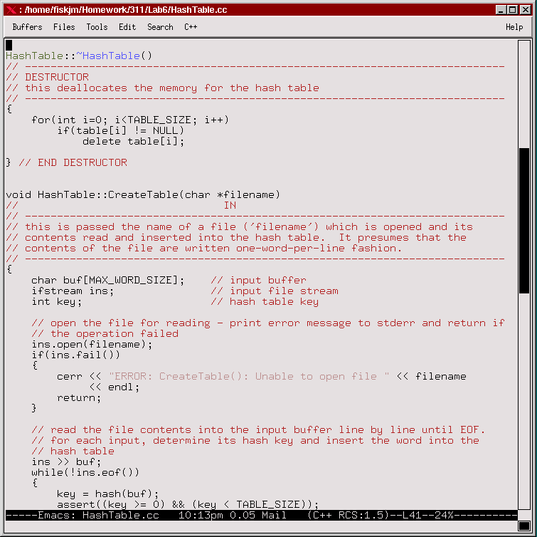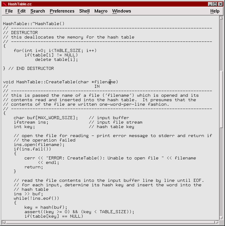 VIM Programming PerksWell, as I mentioned above, I ended up spending a good deal of time programming this semester. Our software engineering team designed and coded a simple FORTRAN 77 spell checker in C++. Thing was, the analysis and design phase consumed 11 of the 14 weeks of the semester AND it was done using Structured Analysis. Problem was, we had decided to code this thing in C++ and so ended up almost completely redesigning it using OO Analysis and Design during the last couple weeks (when we were supposed to be doing nothing but coding :-).