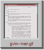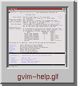 What I did was create a number of screen dumps of gvim in action -- editing a *.cc file (show off the syntax highlighting stuff...), using the online help system (also shows the multi-window look), and displaying a manual page from within gvim ("Look ma! No hands...!"). I used the venerable ImageMagick to make the thumbnail prints after using a combination of xv, xwpick, and xwd to make the actual screen dumps and crop the pics.