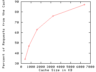 size vs. the number of requests satisfied from the cache.