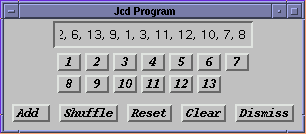 + programListing - a text field; + trackPanel - a grid of track buttons; + and buttonPanel - a row of control buttons.The program class isn't really any more complex than the rest of the GUI except that it features quite extensive use of Inner Classes and Anonymous Classes newly introduced in Java 1.1. Most of the following description will concentrate on these two new language features.